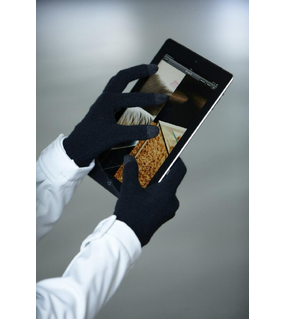 Integrated metallic fibres on finger tips for optimum handling of touch screen surfaces